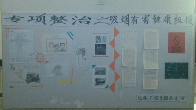 此项活动得到了全系同学的积极响应与支持。吸烟的同学看过宣传板报得知了吸烟的危害,不吸烟的同学更加坚定了远离烟草的决心。